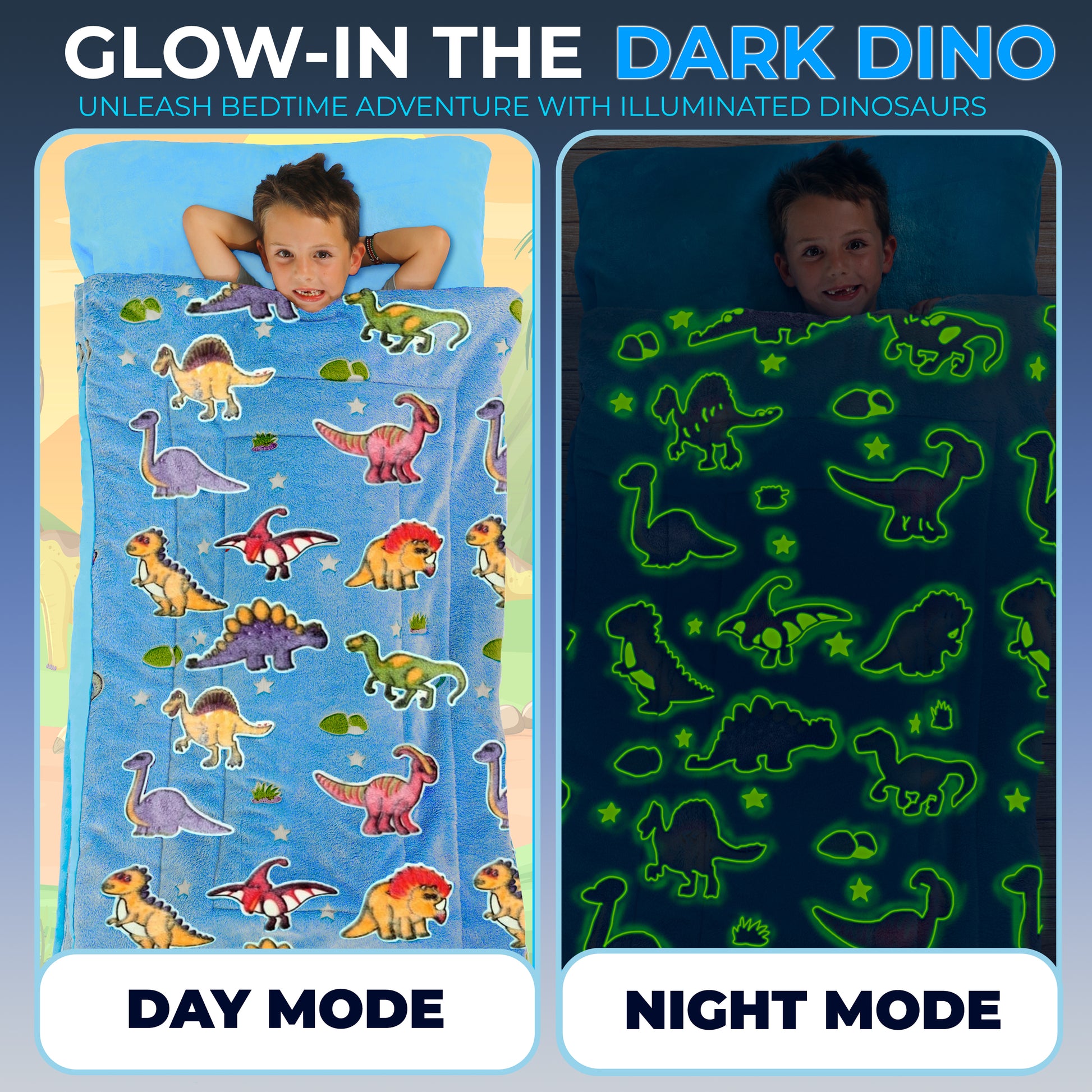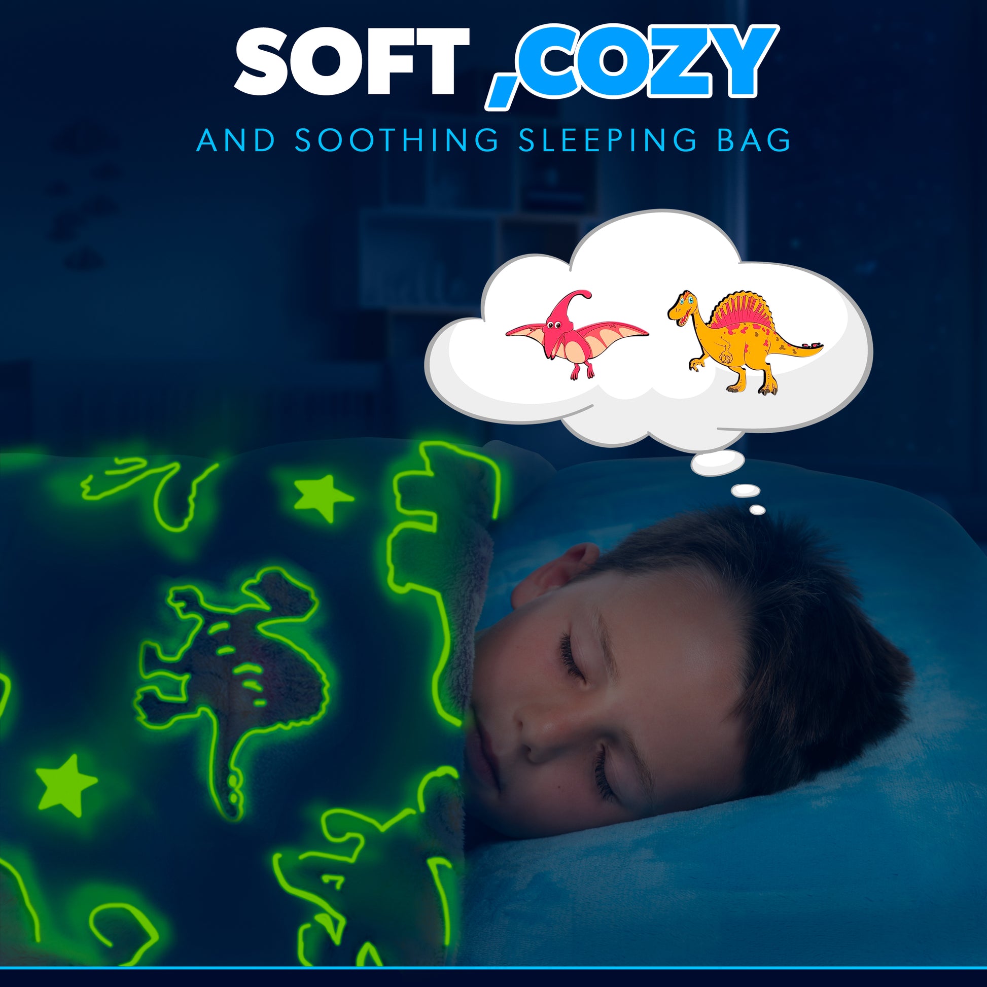 Make sure your little one is always comfy with our amazing dinosaur glow in the dark sleeping bag!