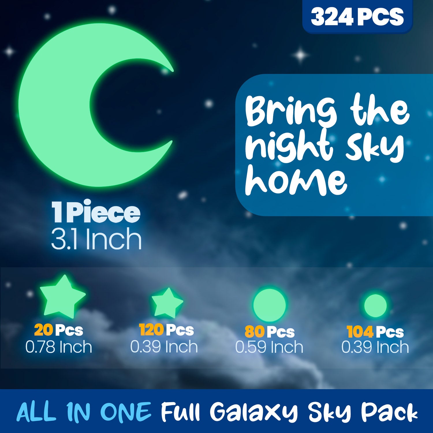- Our Glow in the Dark Galaxy set is as real as the stars in the night sky! Unlike other galaxy stickers in the market, our Glow in the Dark Galaxy set does NOT look synthetic. During the daytime, the stickers blend well on walls, and in the dark, watch how your bedroom transforms into a beautiful planetarium.