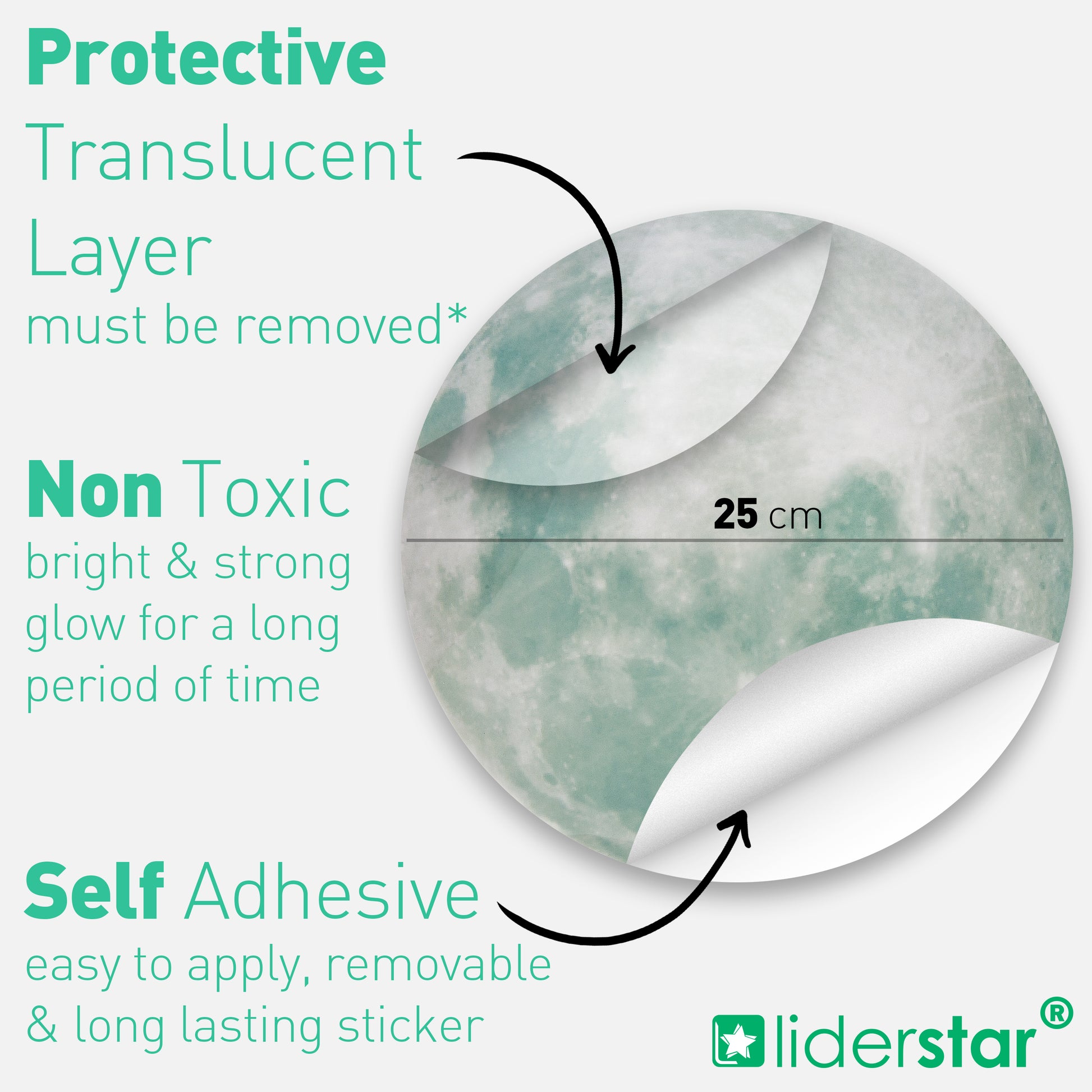 Our Glow in the Dark Moon and Stars stickers is a set of stars with one full moon. We want to promote positivity and give security to kids to help them sleep better at night.